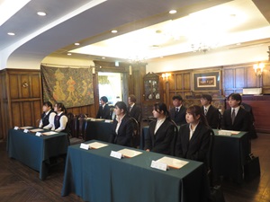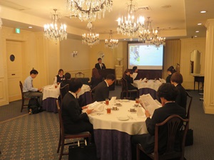 その後は、社会人としての第一歩にふさわしく、テーブルマナー講習を実施。