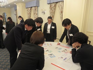 午後からは、内定者同士の交流を深める「SDGsカードゲーム」を損害保険ジャパン株式会社の深澤様のご協力のもと実施。